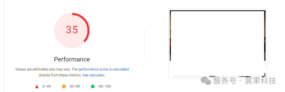 网站性能不仅影响用户体验,更是搜索引擎评估网站质量的重要标准。项目初期,客户网站的性能表现不尽理想,移动端和PC端的性能评分分别只有33分和35分,这严重影响了用户留存和搜索引擎抓取效率。