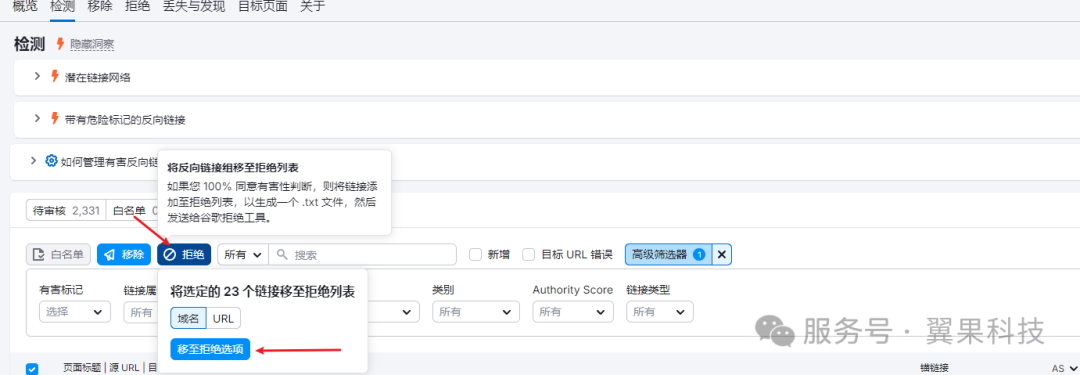 同时,为了确保网站外链环境的纯净与健康,我们还定期进行外链质量审查。对于那些可能对网站产生负面影响的低质量、垃圾外链,我们积极通过 Google Search Console 的“拒绝指向您网站的链接(Disavow)”工具进行提交,主动切断与它们的关联。这一严谨的操作,确保了网站的外链配置始终处于最佳状态,避免了潜在的Google惩罚风险。