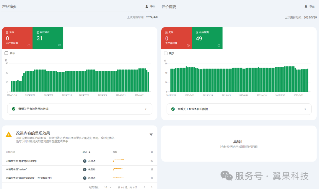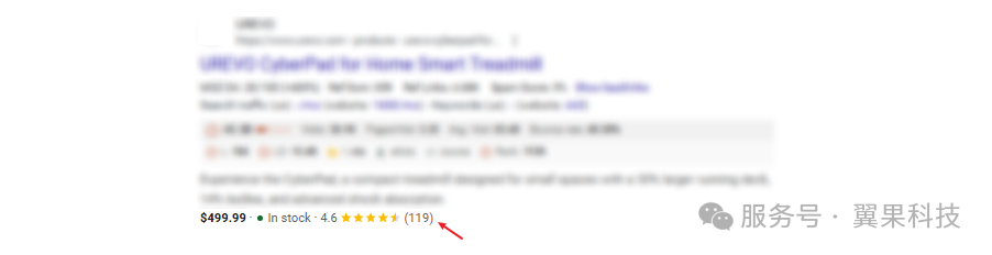 除了基础性能的提升,我们还深入进行了结构化数据优化。针对客户的产品页面,我们成功让其网页在搜索结果页面出现评论摘要(Review Snippets)。直接在搜索引擎结果页面(SERP)中展示评分和评论,能极大地丰富落地页的呈现效果,进而有可能提升点击率。